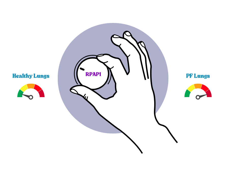 Understanding the consequences of permanently increased RPAP1 levels in the lungs could help identify new ways to either repair the faulty volume knob, cut off its power, or interrupt the signal from the volume knob to the speaker, thereby reducing the scarring process.