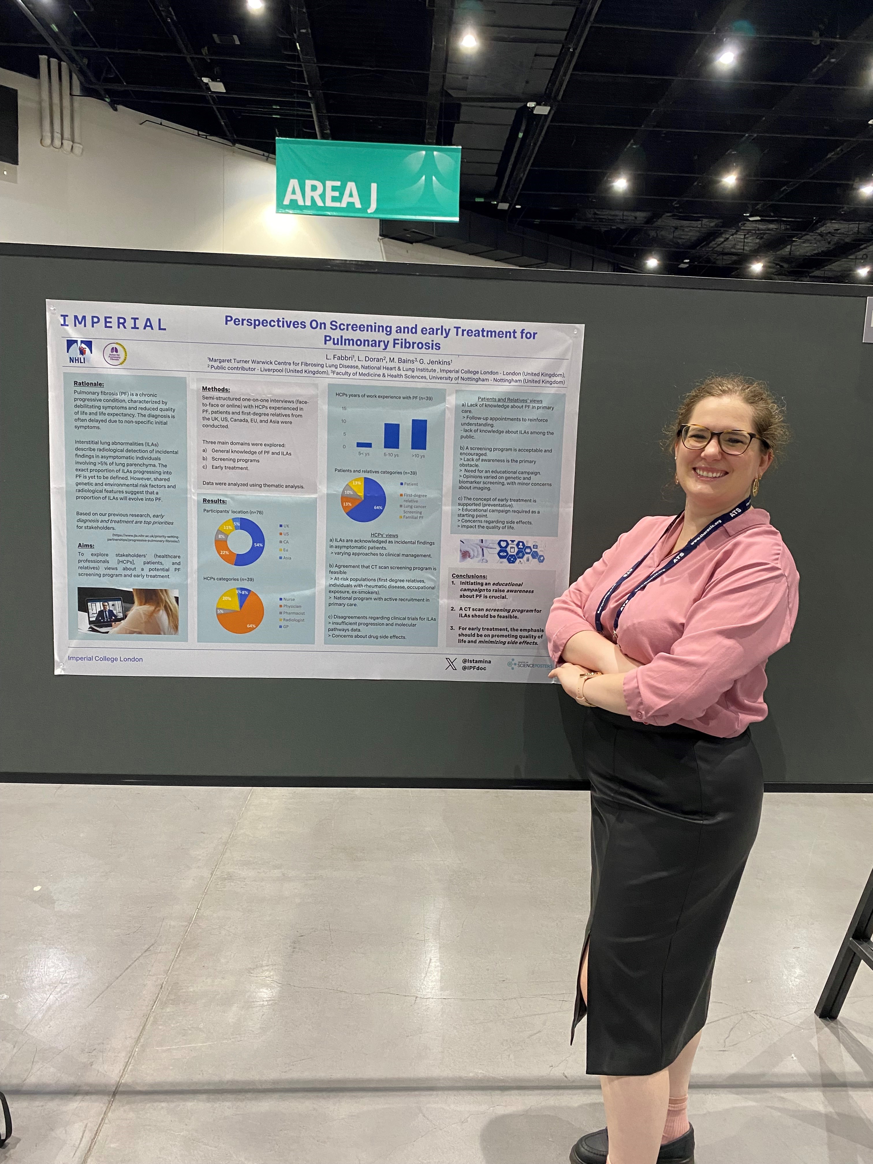 Interstitial lung abnormalities (ILA) is a term used to describe small changes seen on an image of the lungs. A person with an ILA typically has no symptoms and normal lung function. It is not clear how ILAs are related to interstitial lung disease (ILD) like pulmonary fibrosis. Laura’s research focused on understanding the connection between ILAs and pulmonary fibrosis (PF). Laura wanted to know the views of healthcare professionals (doctors, nurses, etc.) specialising in PF, patients living with PF, and their family members, on national lung health screening programmes.