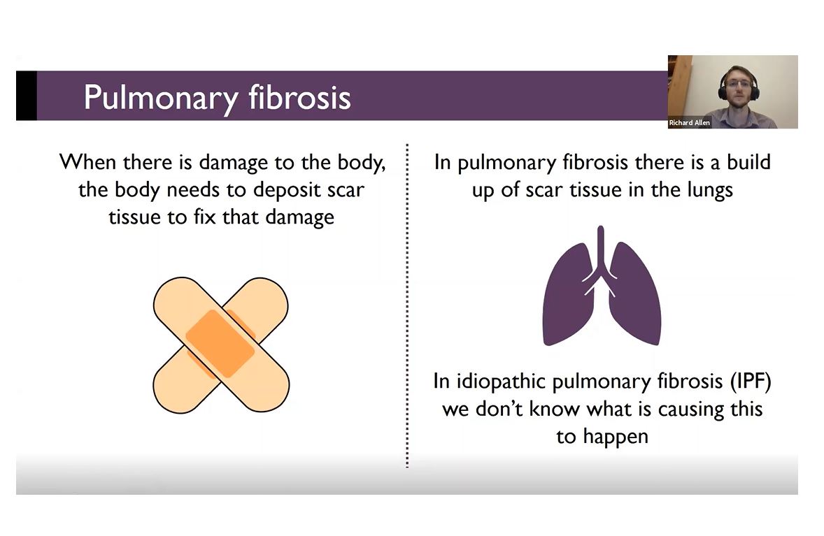 "Welcome everybody to the first APF webinar on new directions in pulmonary fibrosis research with APF funded researcher Dr Richard Allen, hosted by Steve Jones