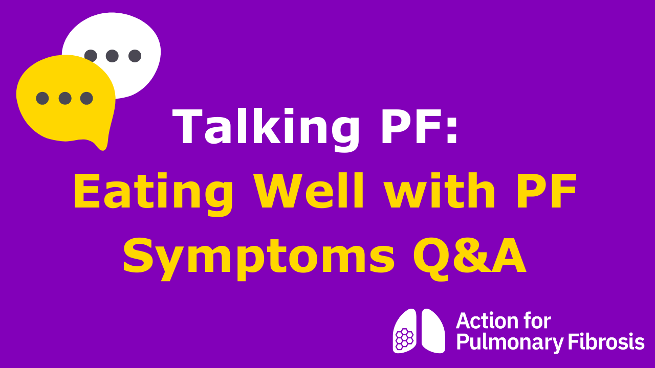 Our panel of experts answer your questions about eating well with PF symptoms. Dietician Kate Taylor is joined by APF's specialist nurse Jo Dallas and Peter who is living with pulmonary fibrosis. Once you've watched the webinar, we'd love to hear what you think.